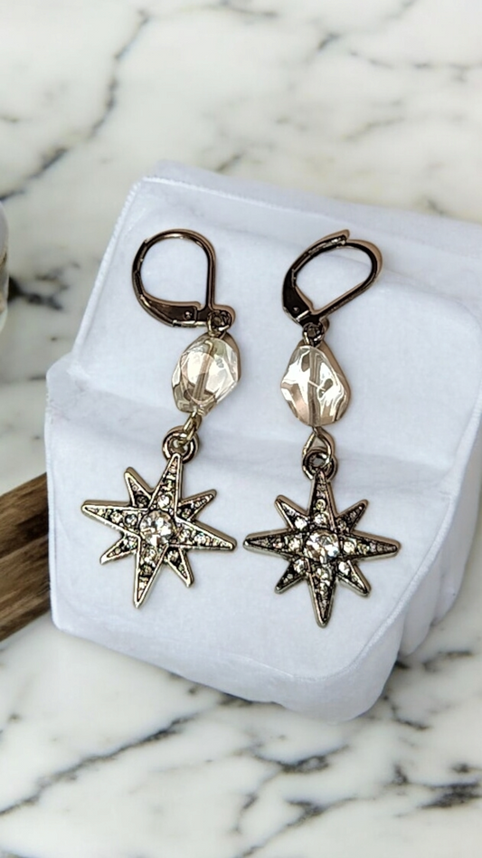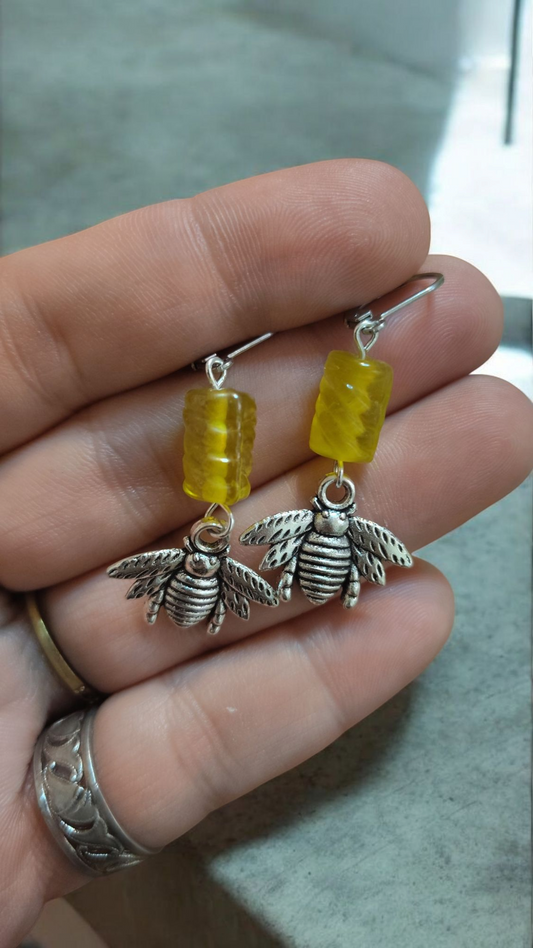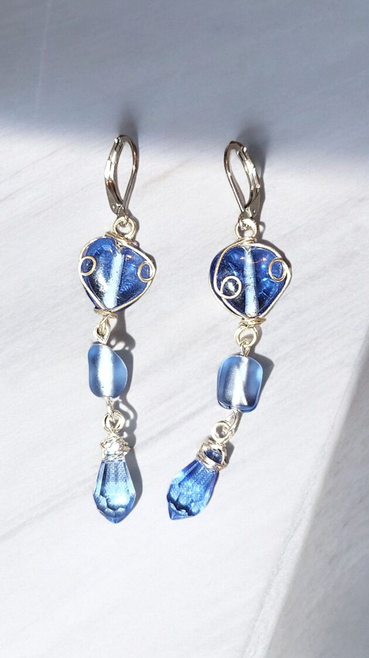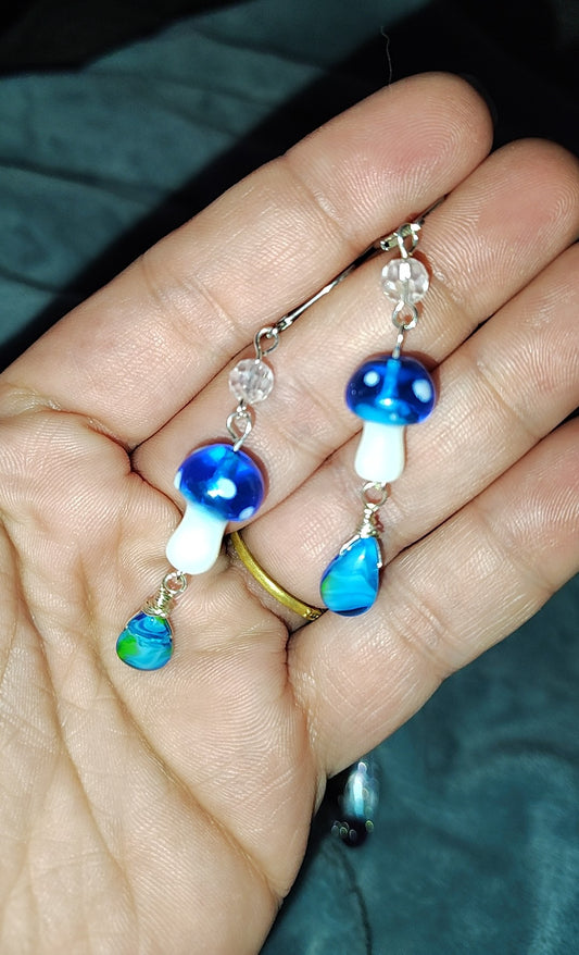 Blue Glass Mushroom Teardrop Dangle Earrings