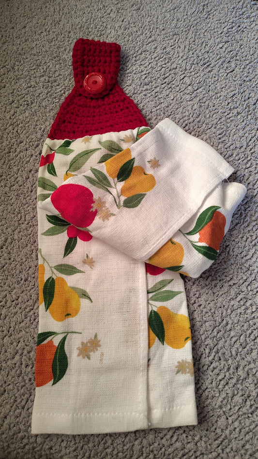 Crochet-topped Hanging Kitchen Towel (fruits)