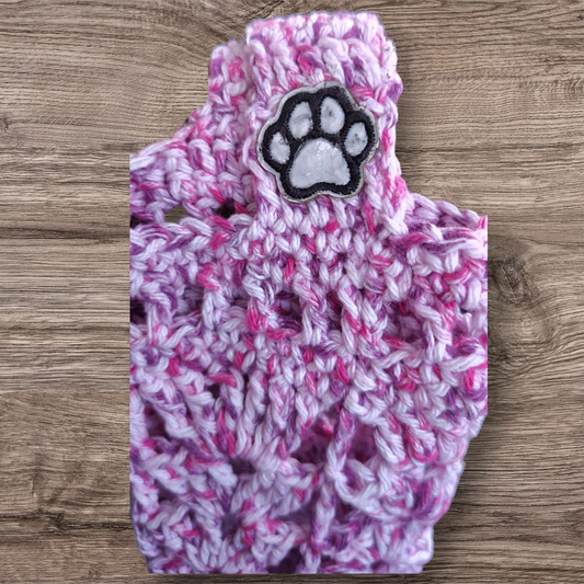 Crocheted Water Bottle Holder - Berry with Paw Print