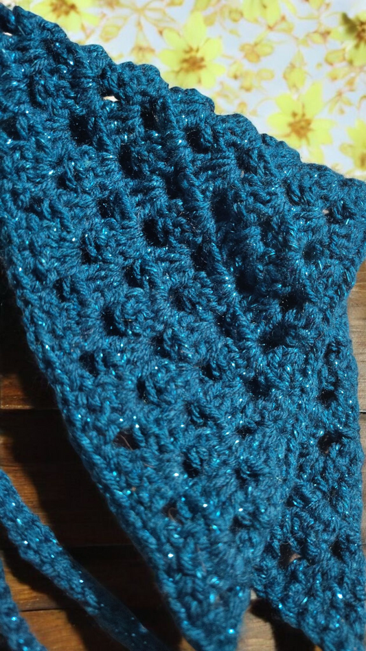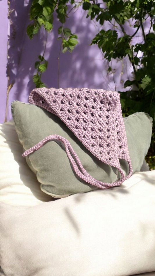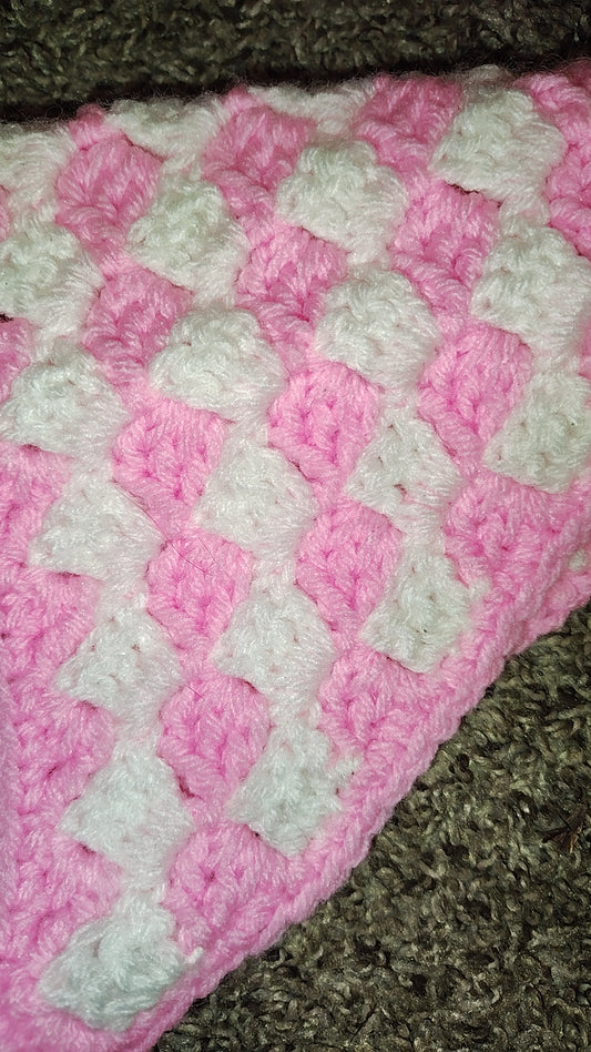Crocheted Pink and White Checkerboard Bandana Headscarf