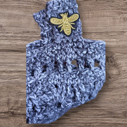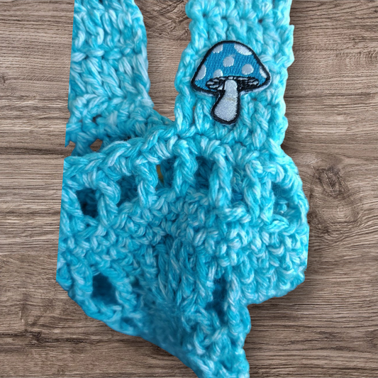 Crocheted Water Bottle Holder - Blue With Mushroom