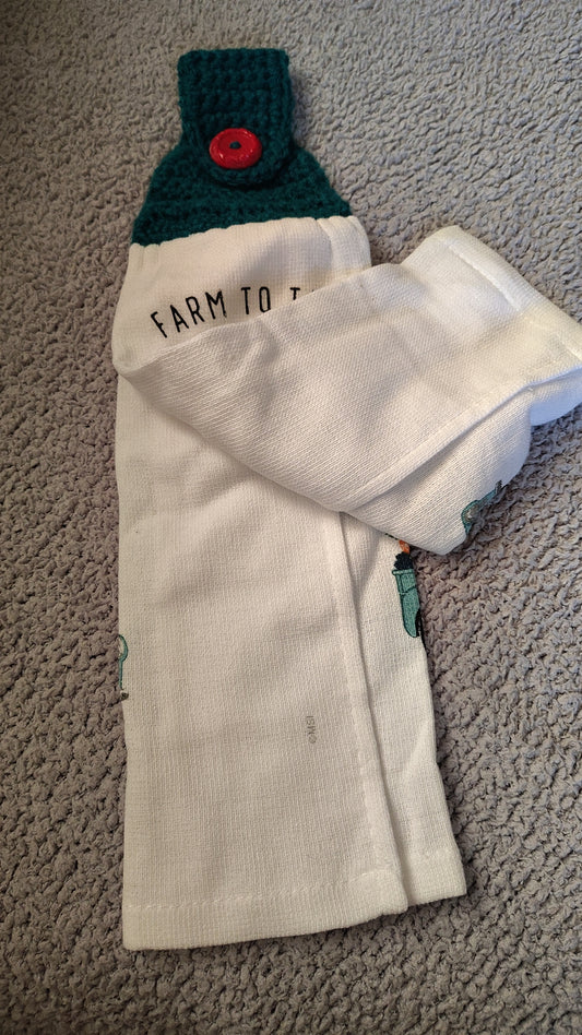 Crochet-topped Hanging Kitchen Towel (farm truck)