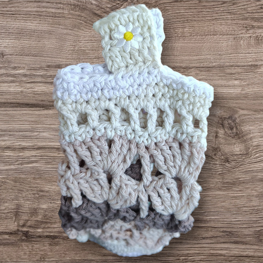 Crocheted Water Bottle Holder - Mocha with Daisy