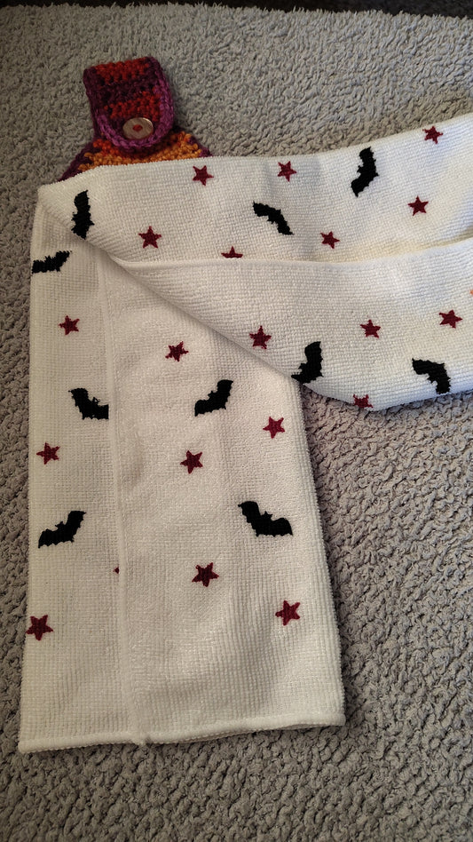 Crochet-topped Microfiber Hanging Kitchen Towel (Happy Spooky Halloween)